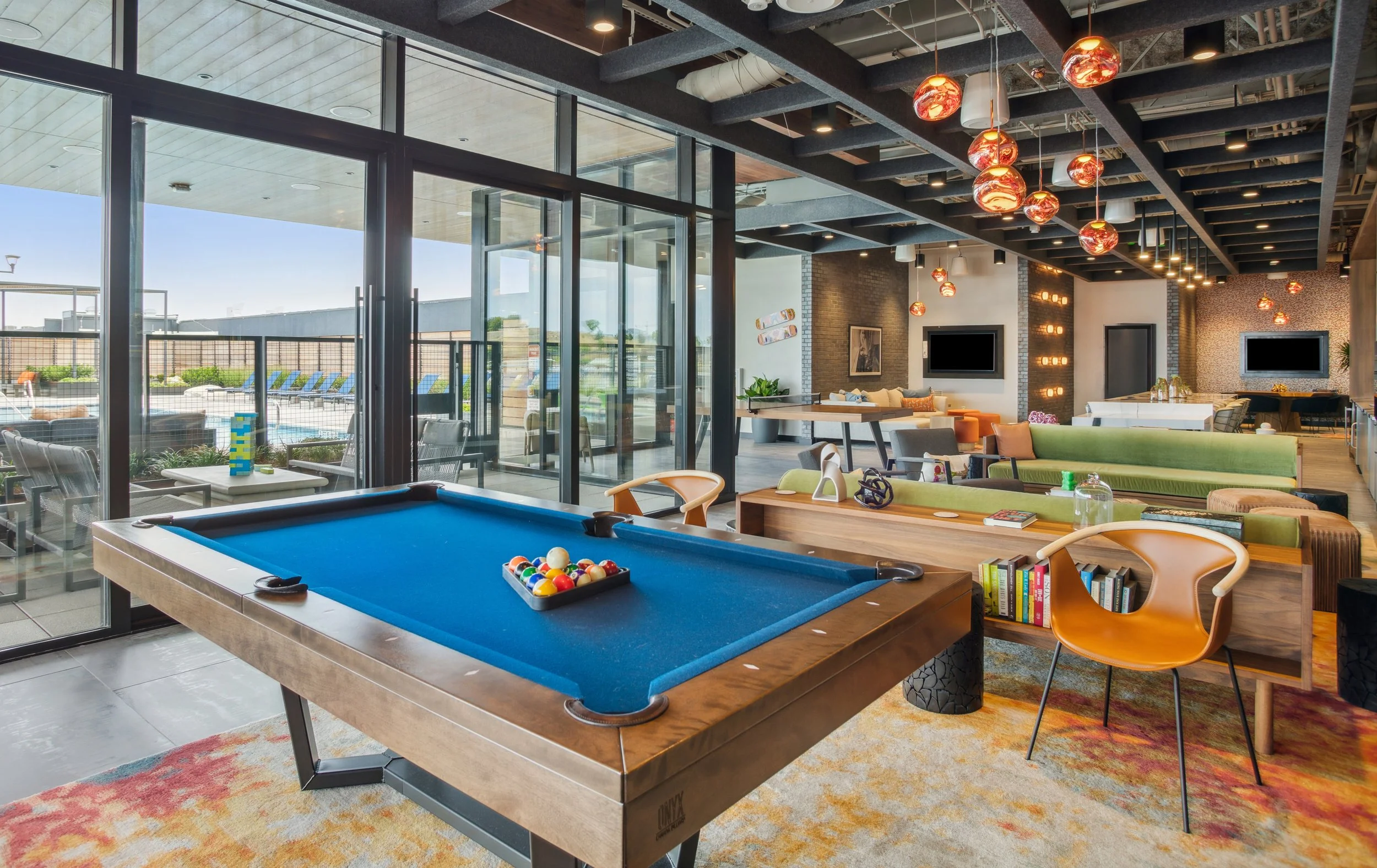 Lobby, leasing, co-working, double height fitness center with basketball court, makerspace with supplies and equipment, pet spa, rooftop sky lounge with gaming and indoor/outdoor lounge seating, resort style rooftop pool, speakeasy music room.